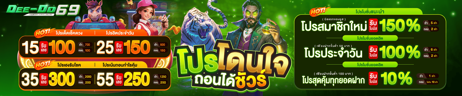 Deedo69 ยังมีโปรโมชั่นและโบนัสสำหรับสมาชิกใหม่และสมาชิกประจำ ซึ่งสามารถช่วยเพิ่มเงินทุนหรือโอกาสในการชนะได้ อย่าลืมตรวจสอบหน้าโปรโมชั่นเป็นประจำ เพื่อไม่ให้พลาดข้อเสนอดี ๆ